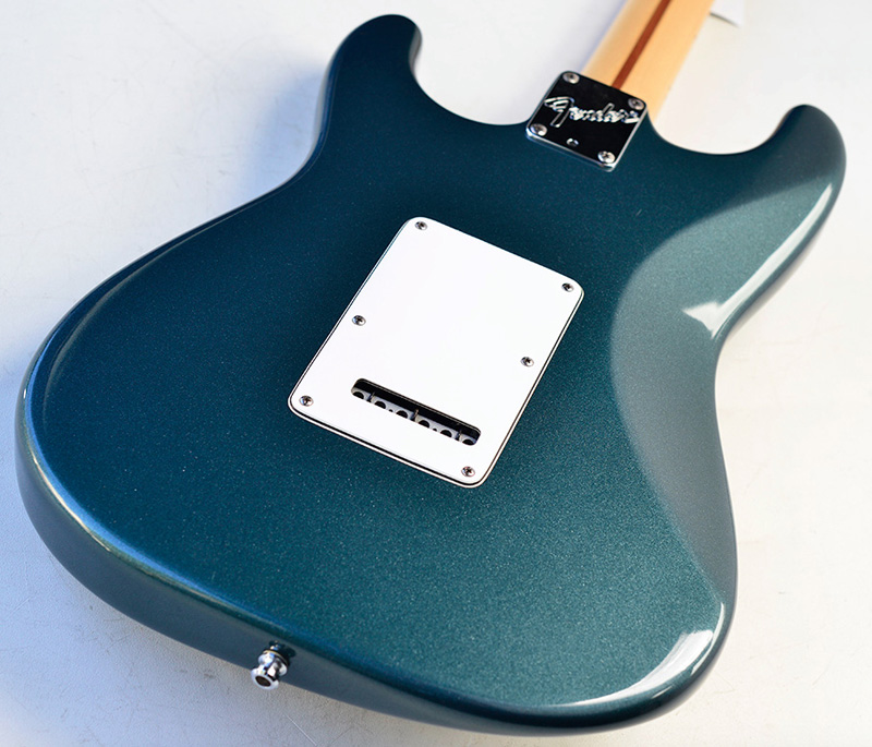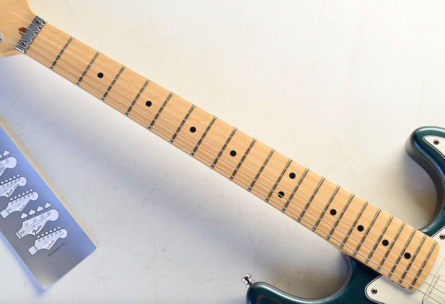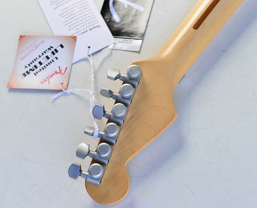 The neck has the micro-tilt adjustment. There is an Allen screw under the Fender neck plate that allows for neck tilt avoiding the use of shims. Many of the Strat Plus and Plus Deluxe (but not all) shipped with a Hipshot Tremsetter installed to improve the tuning for the Tremolo especially for when the player does double stop bends. This guitar is equipped with the Hipshot Tremsetter.