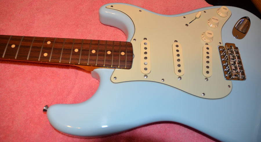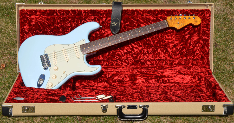 I think this guitar is a wonderful ’63 Sonic Blue Fender Stratocaster Tribute. Even though many of the parts are non-Fender. I wanted to use the best parts I could find.