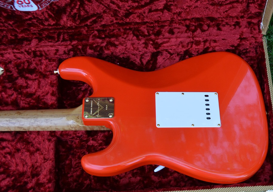 Jimi Hendrix perhaps the most famous Strat player. Before Jimi “sacrificed”, the now famous “Monterey Strat” that he hand painted it was originally a Fiesta Red 1965 Fender Stratocaster.